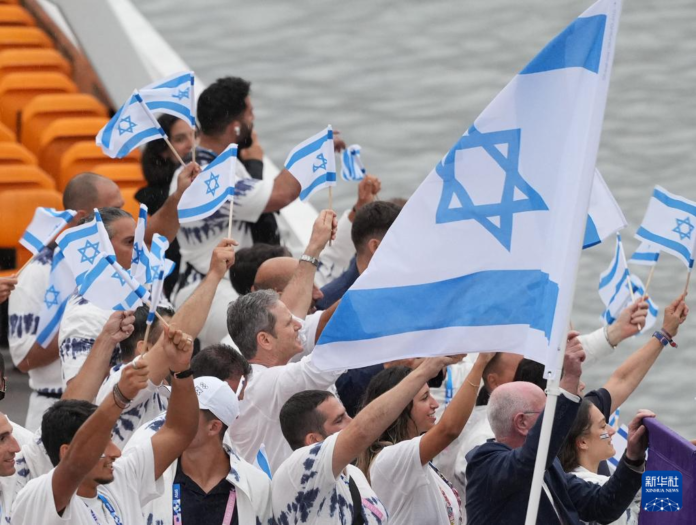 7月26日,以色列体育代表团在开幕式上。新华社记者万象摄