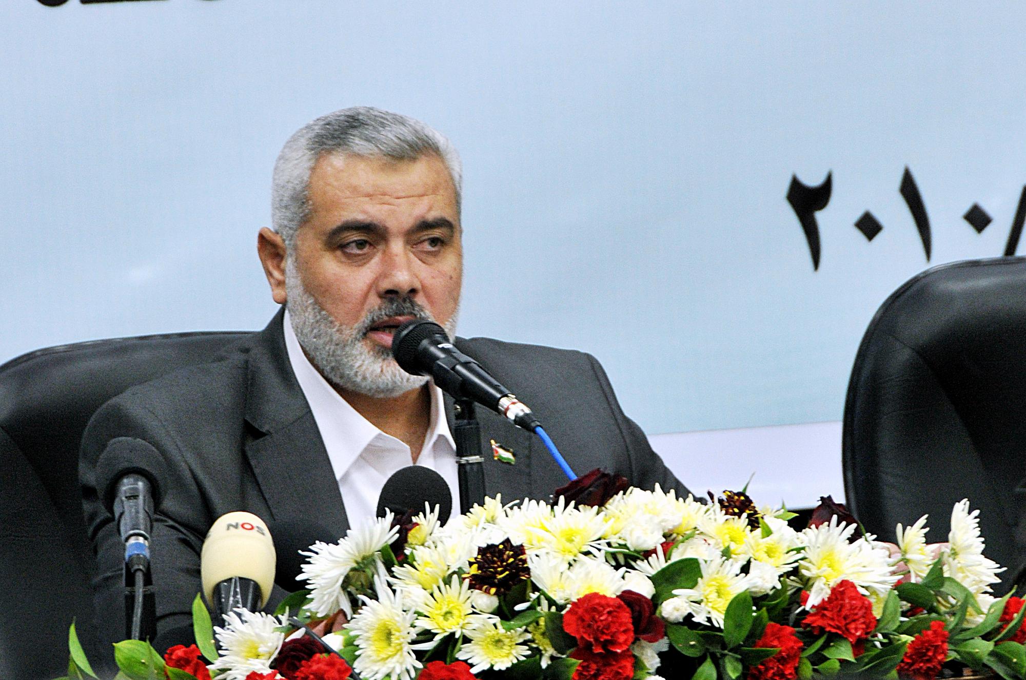 2010年12月1日,巴勒斯坦伊斯兰抵抗运动(哈马斯)高级领导人哈尼亚在加沙城会见外国记者并发表讲话。新华社记者杨媛媛摄