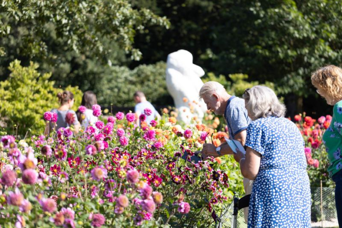 9月7日,人们在荷兰利瑟的库肯霍夫城堡观赏盛开的大丽花。新华社发(西尔维娅·莱德雷尔摄)
