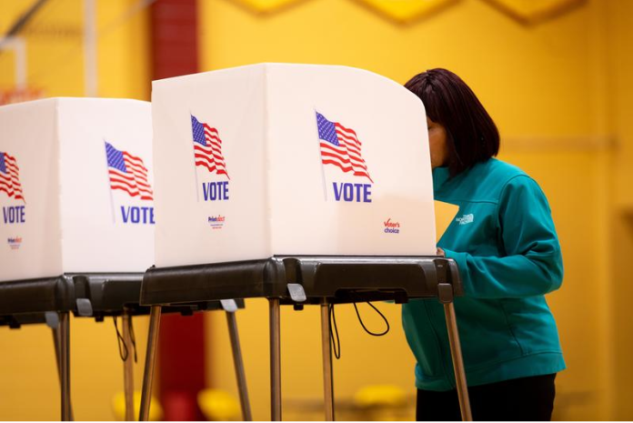 3月5日,选民在美国弗吉尼亚州彼得斯堡的投票点参与投票。美国2024年总统选举当日迎来所谓“超级星期二”党内初选,十几个州和美国领地的选民当天为竞选人投票。初选是美国总统选举的第一阶段。今年美国大选投票日为11月5日。新华社发(温斯特德·巴恩斯摄)
