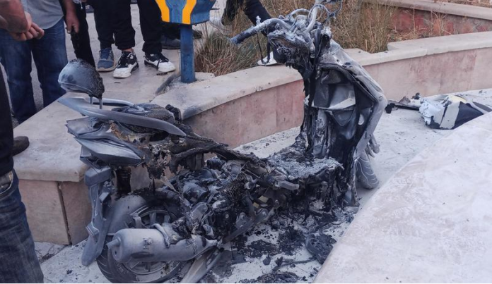 这张9月18日在黎巴嫩巴勒贝克拍摄的照片显示的是通信设备爆炸损毁的摩托车。新华社发(塔希尔·阿布·哈姆丹摄)