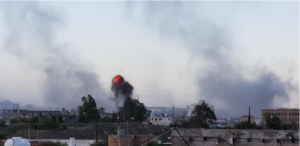 这是10月4日在也门首都萨那拍摄的遭到空袭时冒起的浓烟(手机照片)。新华社发(阿扎齐摄)