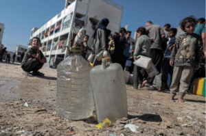 10月20日,人们在加沙地带南部城市汗尤尼斯取水。联合国机构17日发布的最新报告显示,整个加沙地带面临饥荒风险,约86%人口处于“极度严重”饥饿状态,缺乏干净水源和卫生设施。新华社发(里泽克·阿卜杜勒贾瓦德摄)