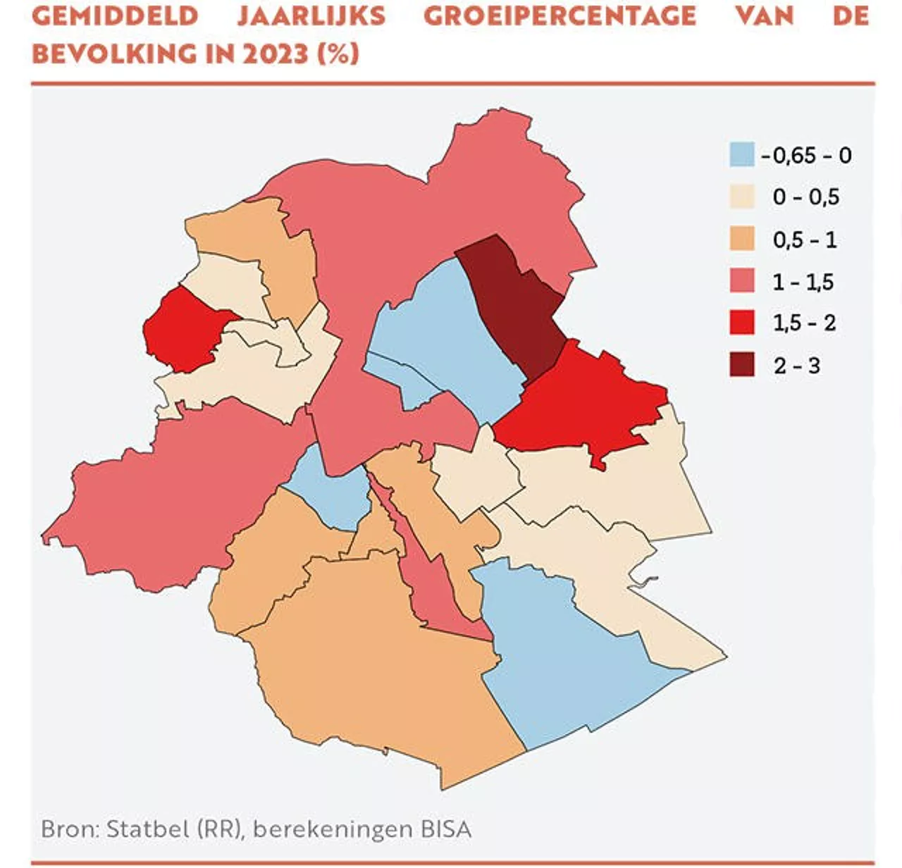 该数据来自布鲁塞尔统计和分析研究所Bisa。2023 年,布鲁塞尔地区的人口增长了约 8,400 个单位,主要是由于来自国外的新布鲁塞尔居民。