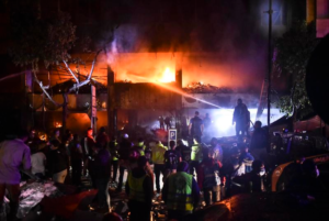 路透社记者在现场看到,空袭留下一个深坑,救援人员在废墟中搜寻幸存者,火药味数小时后还未散去。