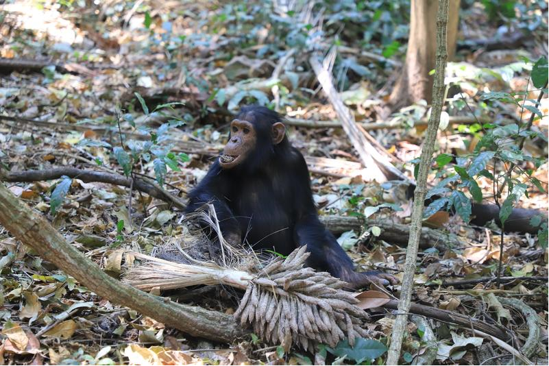 2023年9月2日在坦桑尼亚基戈马的贡贝国家公园拍摄的黑猩猩。新华社记者谢昊摄