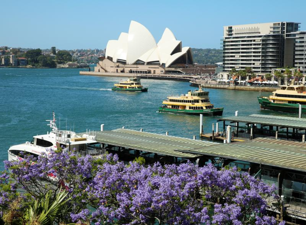 这是10月30日在澳大利亚悉尼歌剧院对岸拍摄的盛开的蓝花楹。新华社记者马平摄