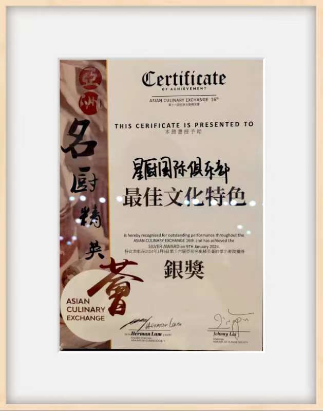 三亞烹饪餐飲行業協會已連續五屆組隊參加, 今年《星廚國際俱樂部》代表隊再獲佳績!共榮獲了《熱葷(魚類)》(黃椒醬蒸桂魚)至尊金獎;