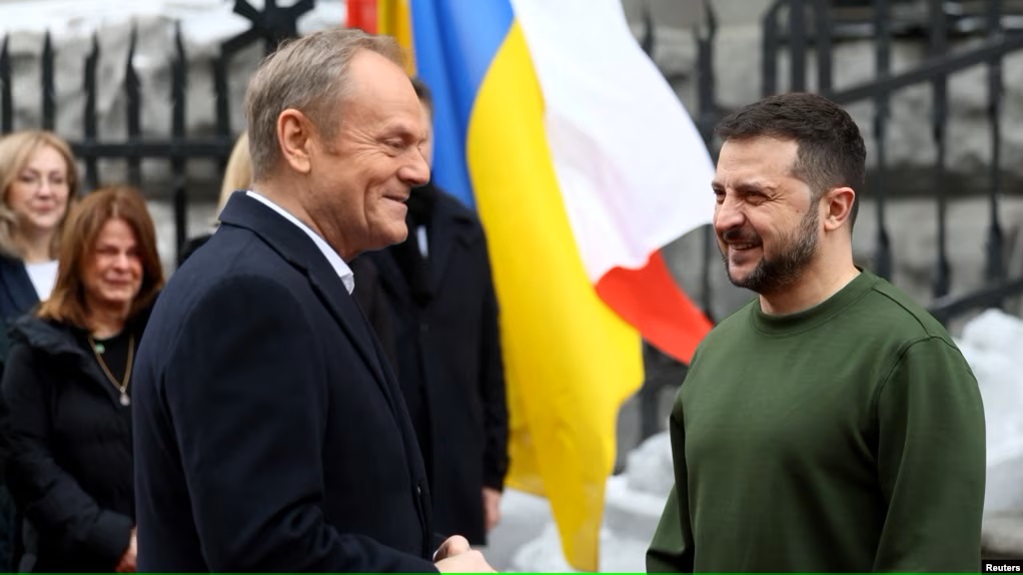 新當選的波蘭總理唐納德·圖斯克(Donald Tusk)在首次訪問基輔時將烏克蘭對俄羅斯入侵的防禦性戰爭描述為“善與惡” 之間的“戰鬥”,並補充說,“波蘭將盡一切努力增加烏克蘭在這場戰爭中獲勝的機會。」
