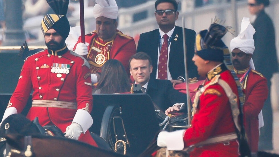印度總理莫迪邀請馬克龍作為出席印度共和國日紀念日的主賓,兩人共同檢閱了印度傳統與英帝國風格混合的閱兵式。馬克龍去年邀請莫迪出席法國國慶日閱兵式,半年後,莫迪回請馬克龍。