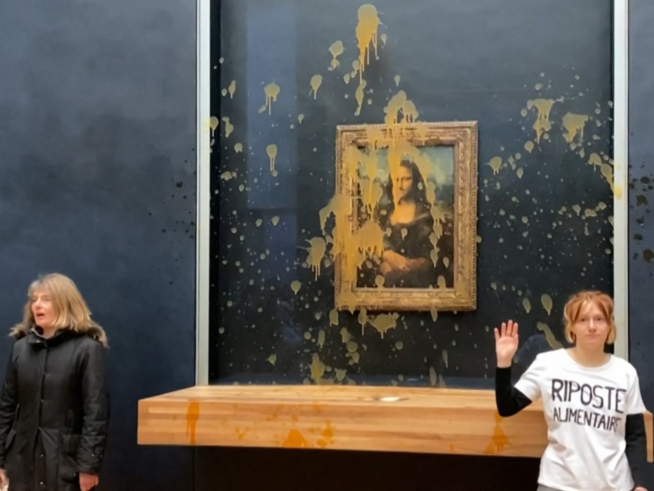 (中華新聞通訊社/中華時報1月28日訊)法國兩名氣候活動人士向收藏在羅浮宮的名畫《蒙娜麗莎》潑湯,由於畫作前面有防彈玻璃保護,因此未有受損。