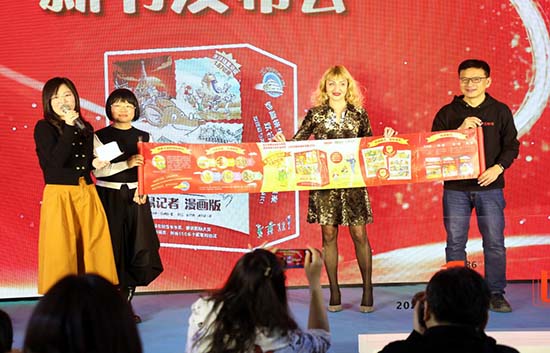 隨後,三位嘉賓上台參與《老鼠記者 漫畫版》的新書發布儀式,共同展開《老鼠記者 漫畫版》精美畫卷。