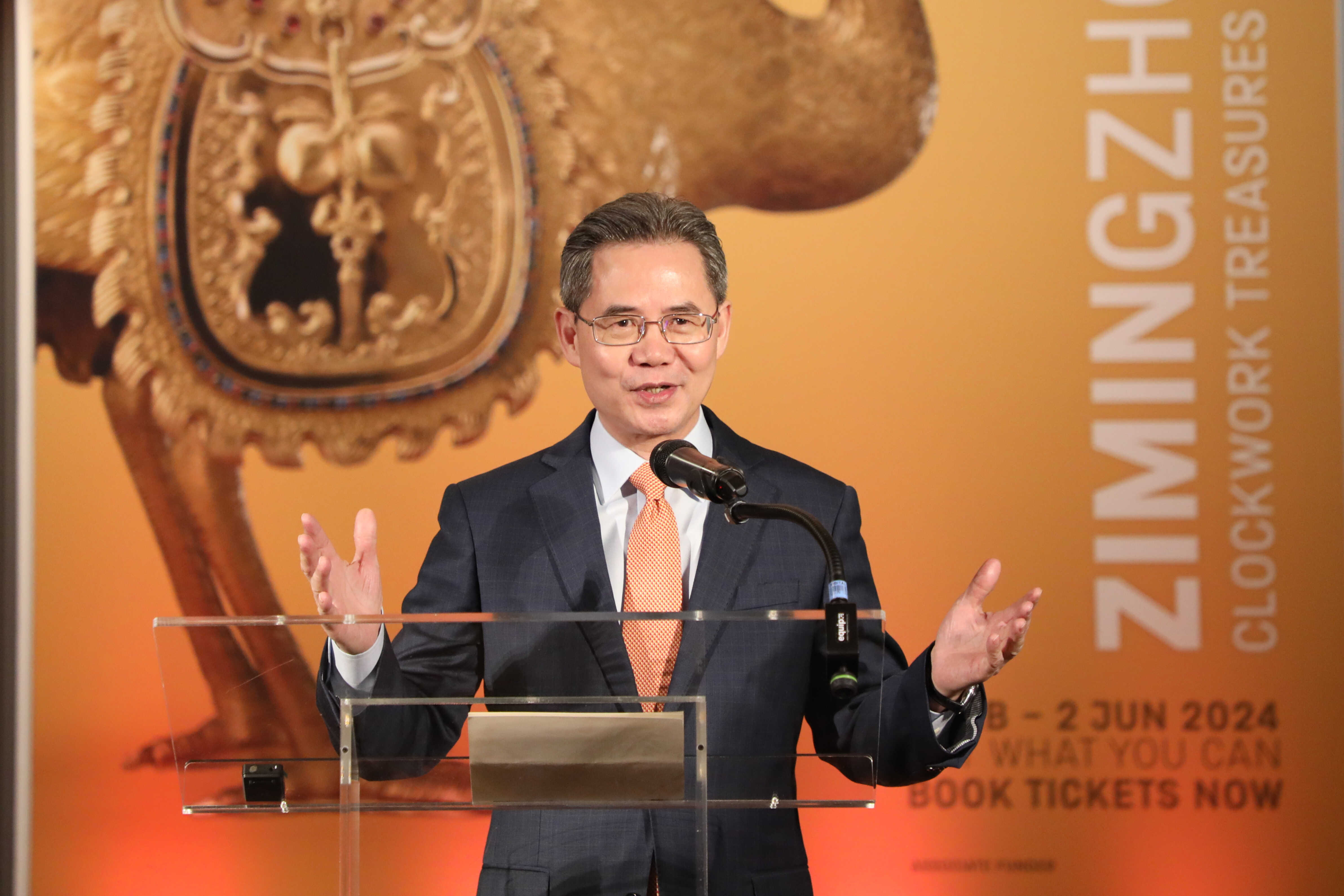 2024年2月1日,中国驻英国大使郑泽光和夫人华梅参赞应邀出席中国故宫博物院与英国科学博物馆联合举办的“凝时聚珍——中英钟表技艺交流展”开幕式并致辞。故宫博物院副院长朱鸿文、英国科学博物馆集团主席蒂姆·劳伦斯爵士及馆长英伯乐爵士等150多位中英文博界人士出席。