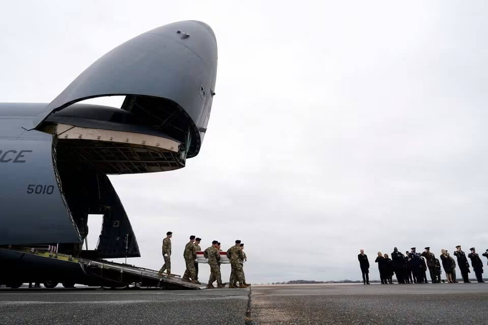 在約旦殉職的3名美軍遺體運回美國,拜登和五角大廈高層今天稍早在德拉瓦州多佛空軍基地(Dover Air Force Base)出席迎靈儀式。