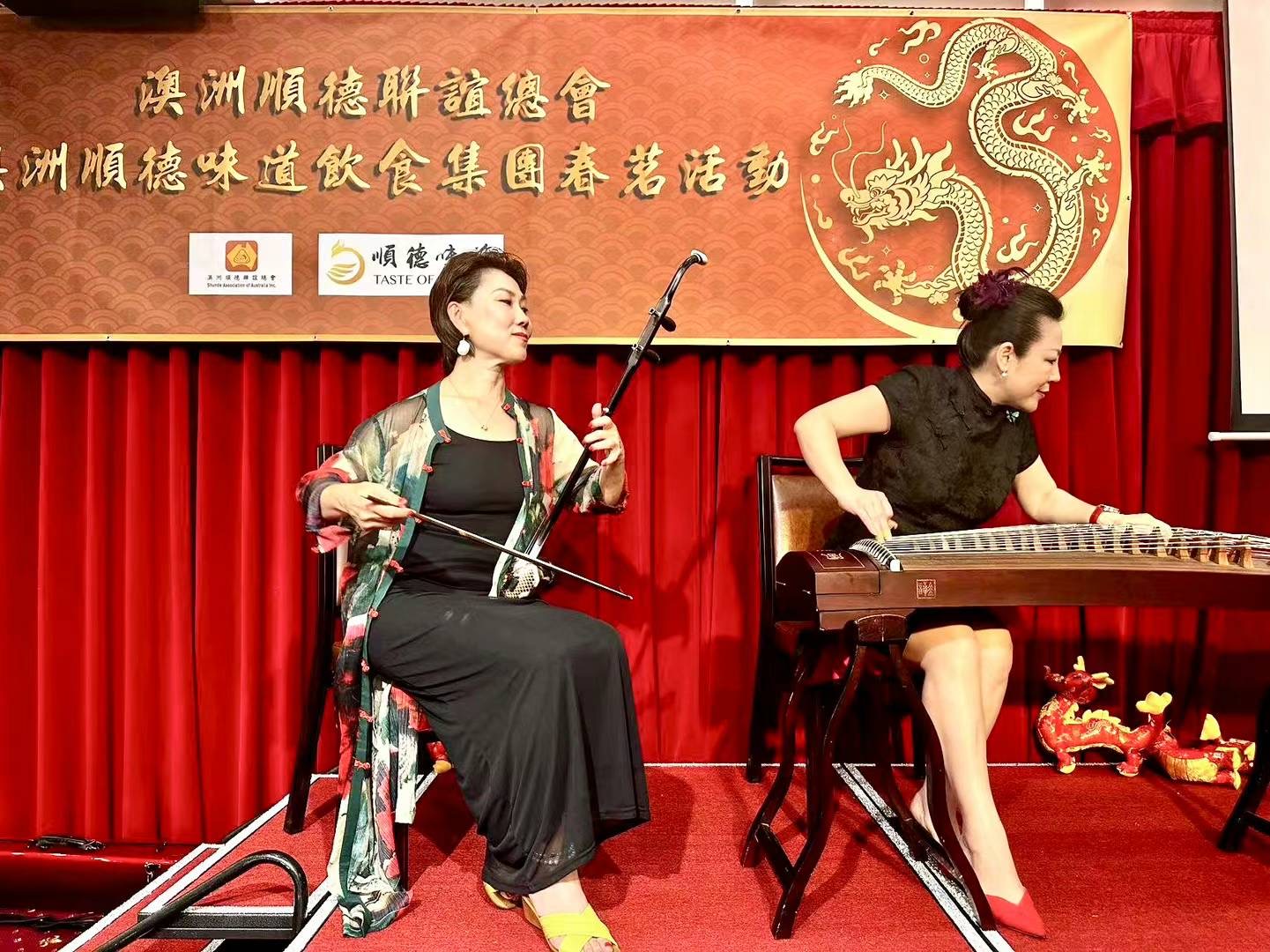 緊隨其後,香港著名的古箏演奏家鄒倫倫博士和客居悉尼的著名二胡演奏家劉家園一起登上舞台,演奏了三首經典之作。鄒倫倫博士的古箏發出悠揚的音色,如泉水般清澈動人;劉家園的二胡演奏激情四溢,琴音回蕩在整個會場。他們的演奏帶領著我們穿越時空,感受到了中國古典音樂的魅力和深厚的文化底蘊。