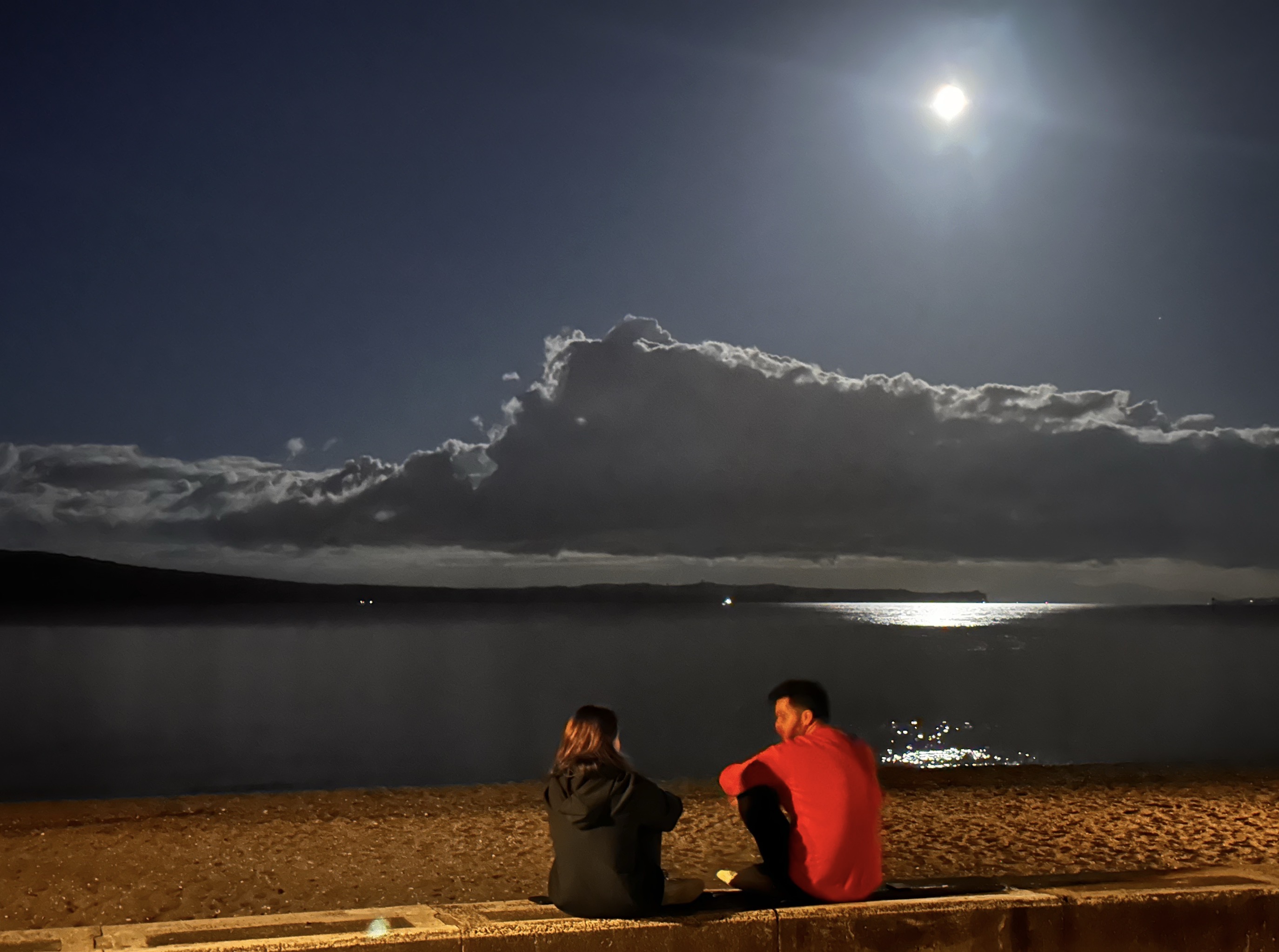 在這明月當空的夜晚,讓我凝望大海那邊。