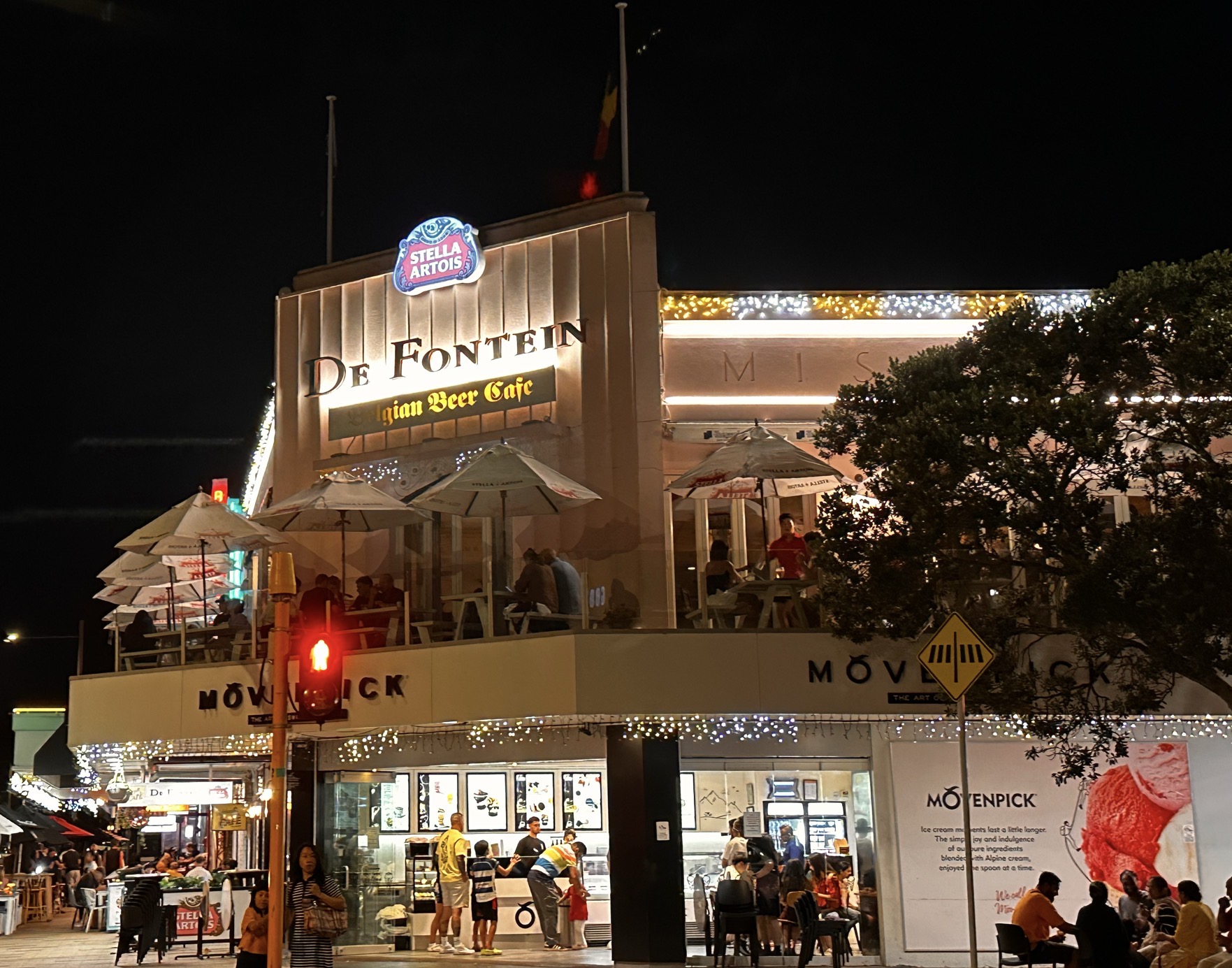 岸邊酒吧街歡聲笑語,伴著音樂喜慶迎來夜晚。