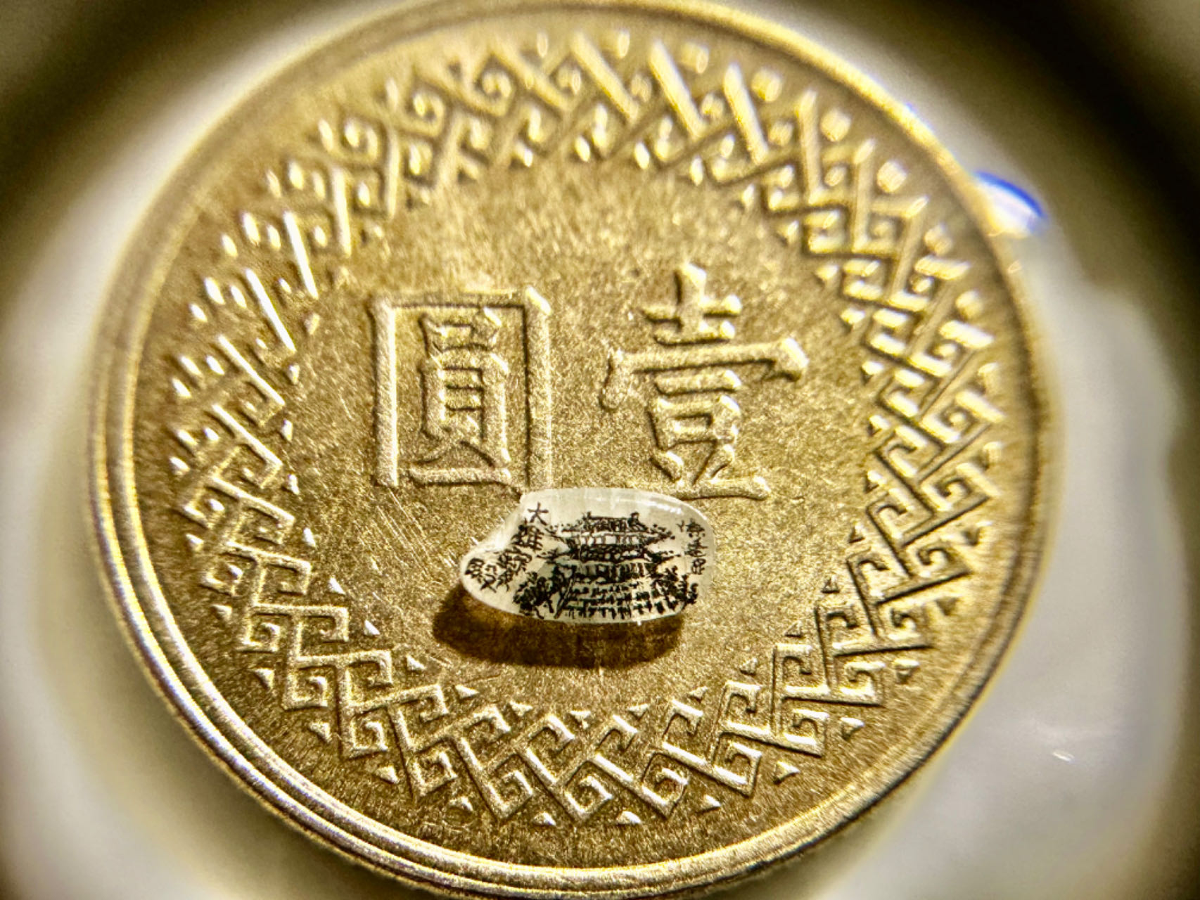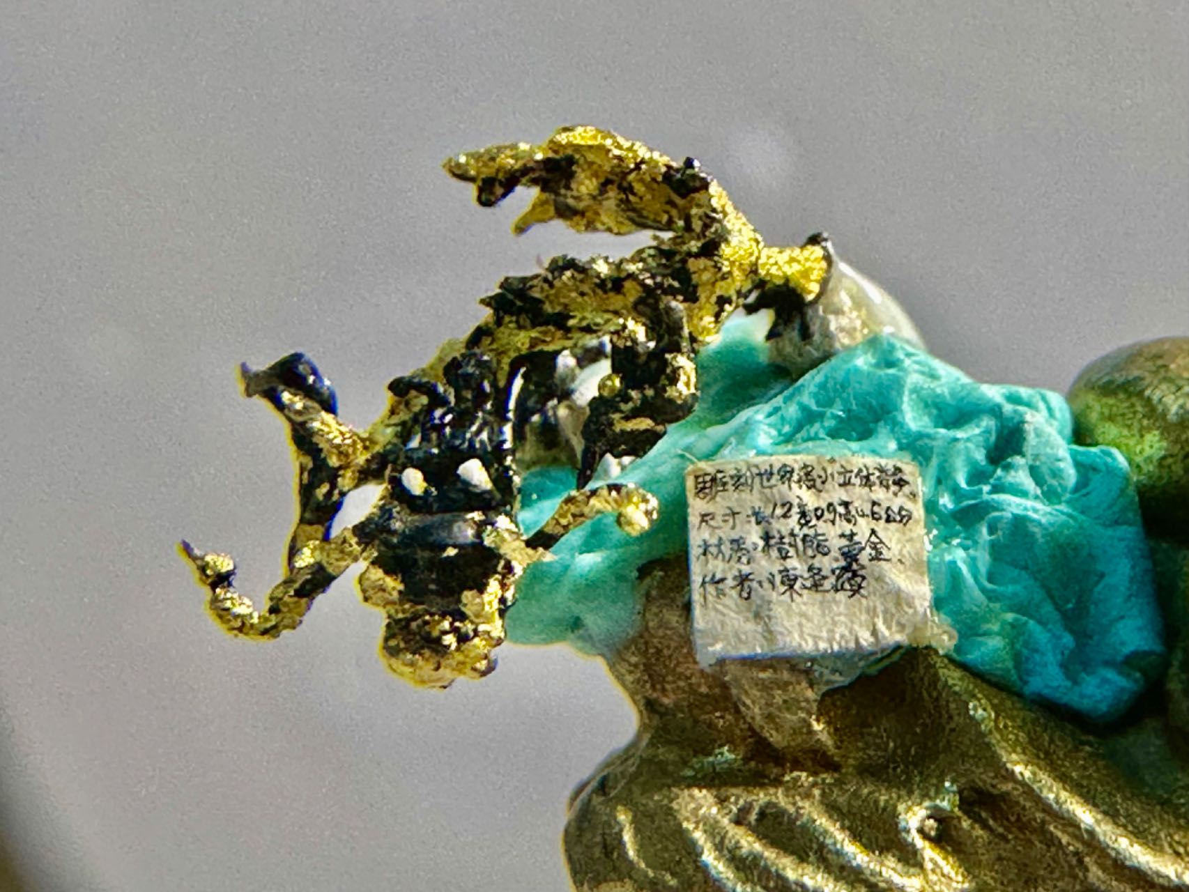 黃金系列有龍年的黃金龍參與這次的展出,更有世界最小的黃金牛、黃金茶壺等!共有12件微雕作品以及4件書法作品。