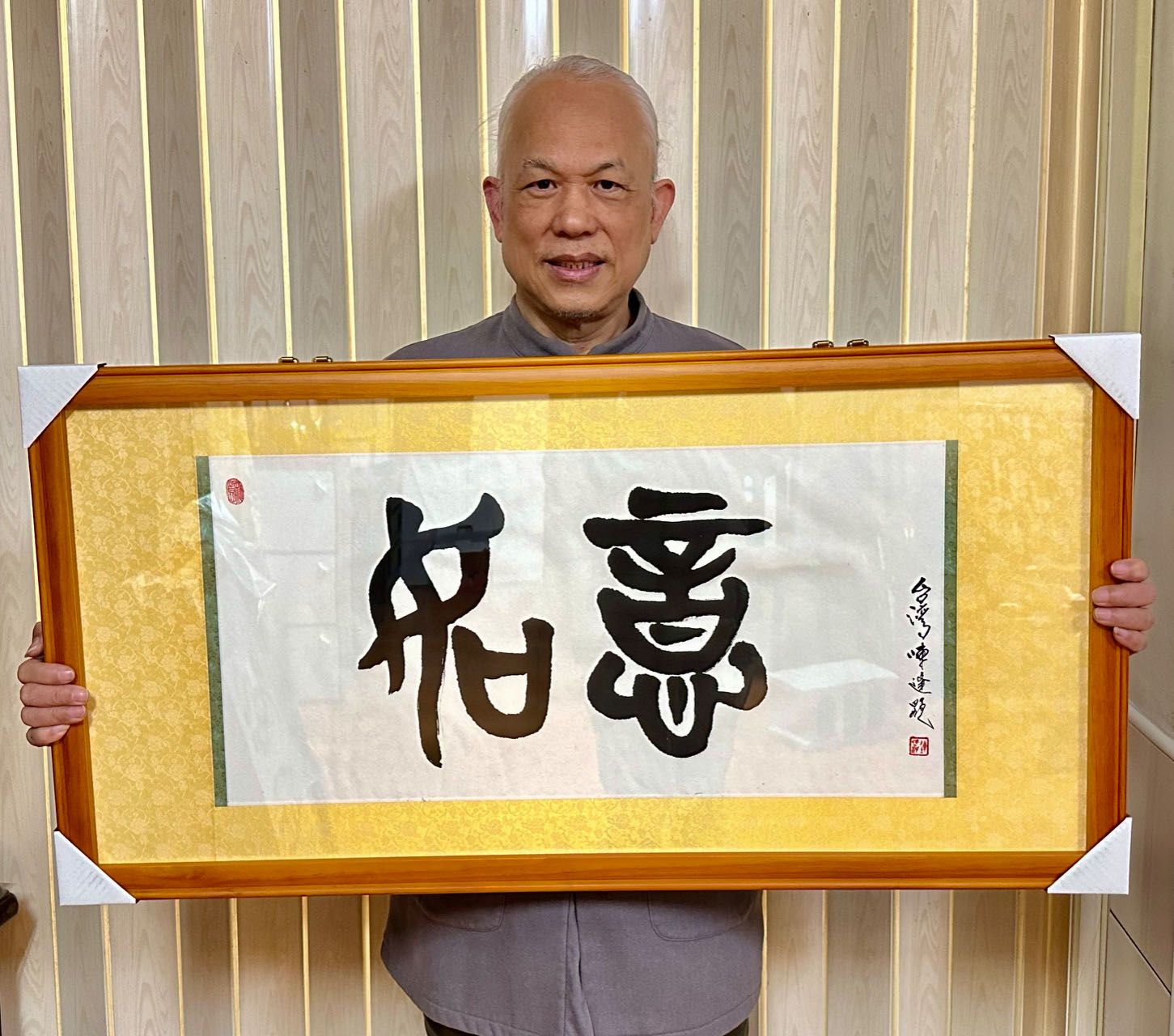 書法內容為「如意」、「靜心」、「菜根香」、「心自在」等4件作品,讓民眾到三峽金光明寺同時可以欣賞多元藝術,每年並且會邀請藝術家展覽,金光明寺都會湧進上萬人士的人潮參與廟會的活動,尤其是這次的文化盛會,寺院更是用心盡力舉辦文化的饗宴。