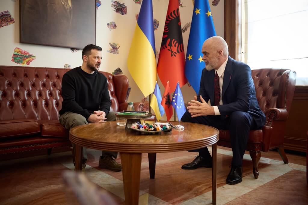 烏克蘭總統澤倫斯基(Volodymyr Zelenskyy)27日晚抵達阿爾巴尼亞,是他自烏國2022年遭俄羅斯入侵以來首度訪問這個巴爾幹半島國家。澤倫斯基近幾個星期來遊走各國,呼籲各國支持陷困的烏克蘭。烏克蘭武裝部隊目前面臨著彈藥短缺的關鍵點,在抵擋俄羅斯部隊地面攻勢上陷入困境。