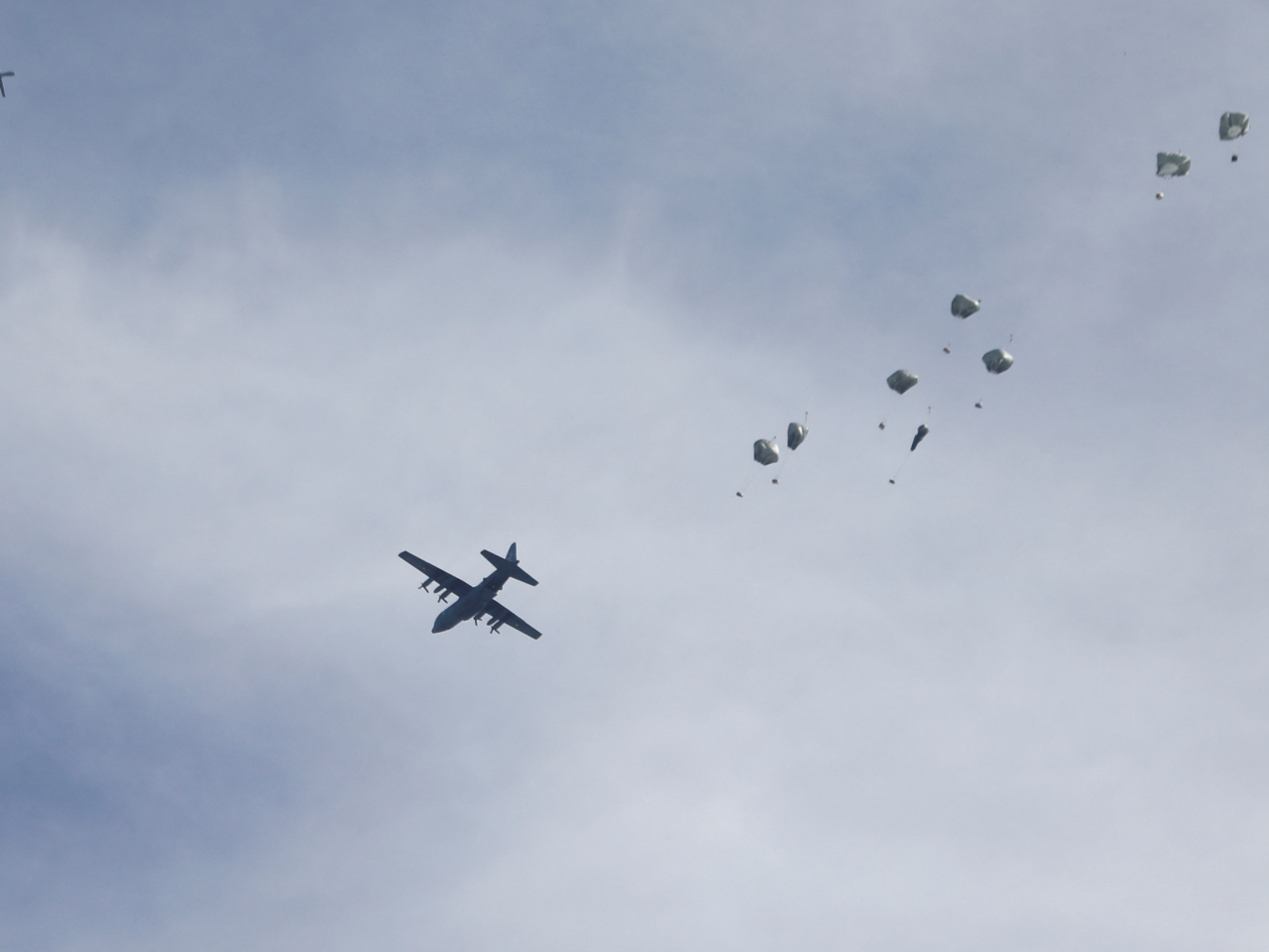 美國軍方人員告知法新社:我們派出3架美國空軍C-130運輸機,進行了人道主義援助聯合空投行動,以向受到衝突影響的平民提供救濟。