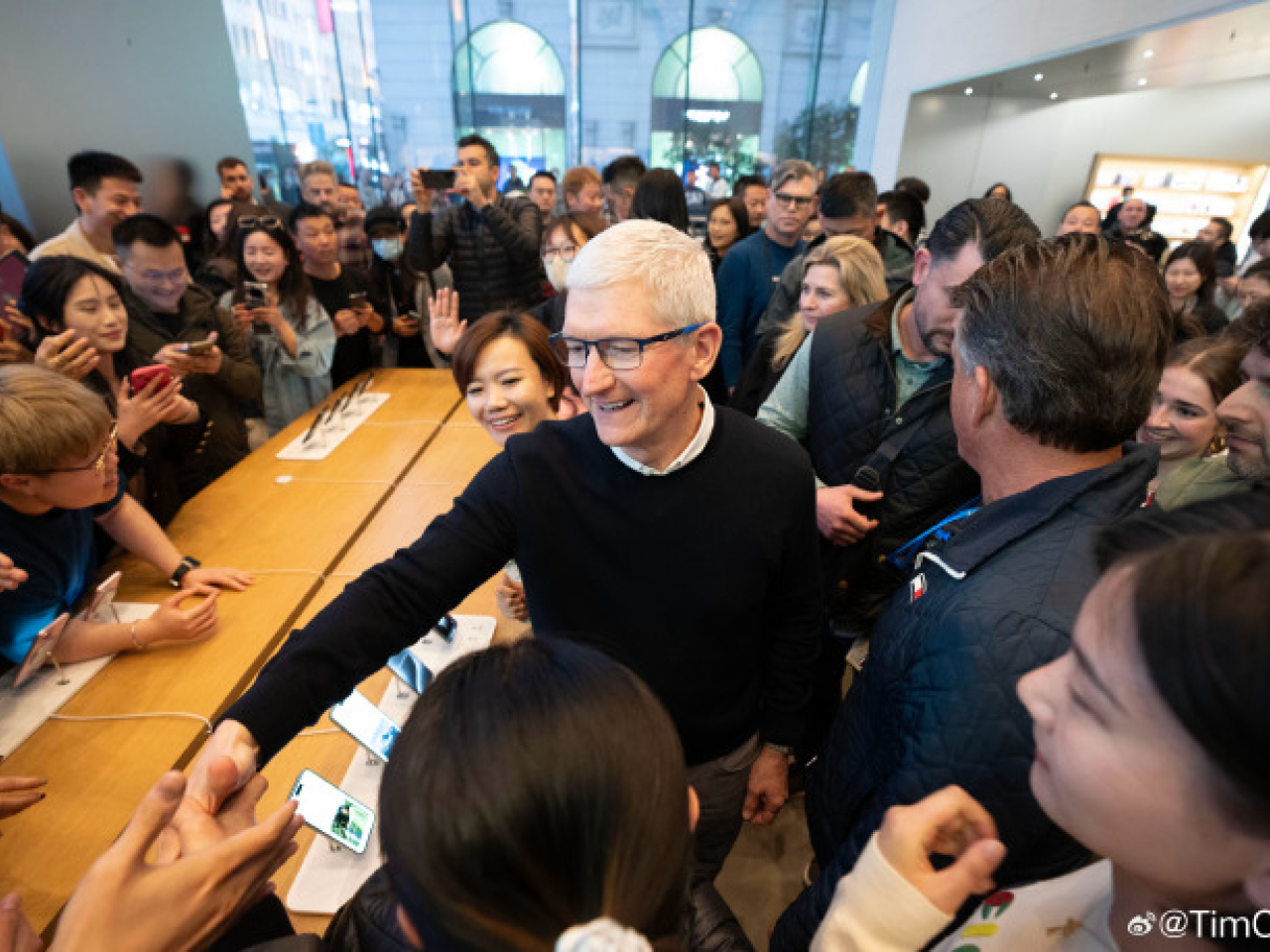 (中華新聞通訊社/中華時報3月21日訊)蘋果公司(Apple)執行長庫克20日現身上海,正值蘋果中國旗艦店今天(21日)將在上海開幕前夕。他除了與供應商會面,並對熱門的AI議題表示,蘋果產品各方面都已在運用。