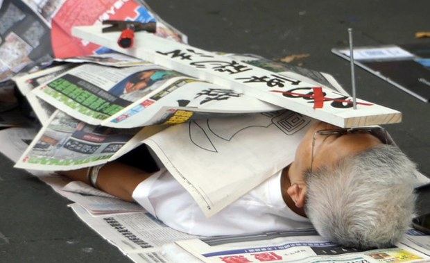 定居於悉尼的香港人藝術家鄭詠兒(Pamela Leung),在示威現場進行一項名爲“最後一口釘”(The Last Nail)的行爲藝術──她躺臥在路上,被好幾頁“蘋果日報”覆蓋着;而壓在她和“蘋果日報”上的,是一把鐵錘和一塊被打上釘子的木板;木板上面寫着“23條惡法”;而“23”這個數字上面,又畫上了 紅色交叉。 她說: