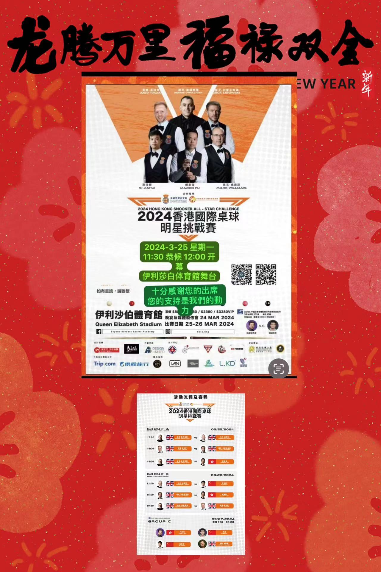 這次賽事由無疆界體育學院主辦,2024香港國際桌球明星挑戰賽一連三日於灣仔伊利沙伯體育館舉行。