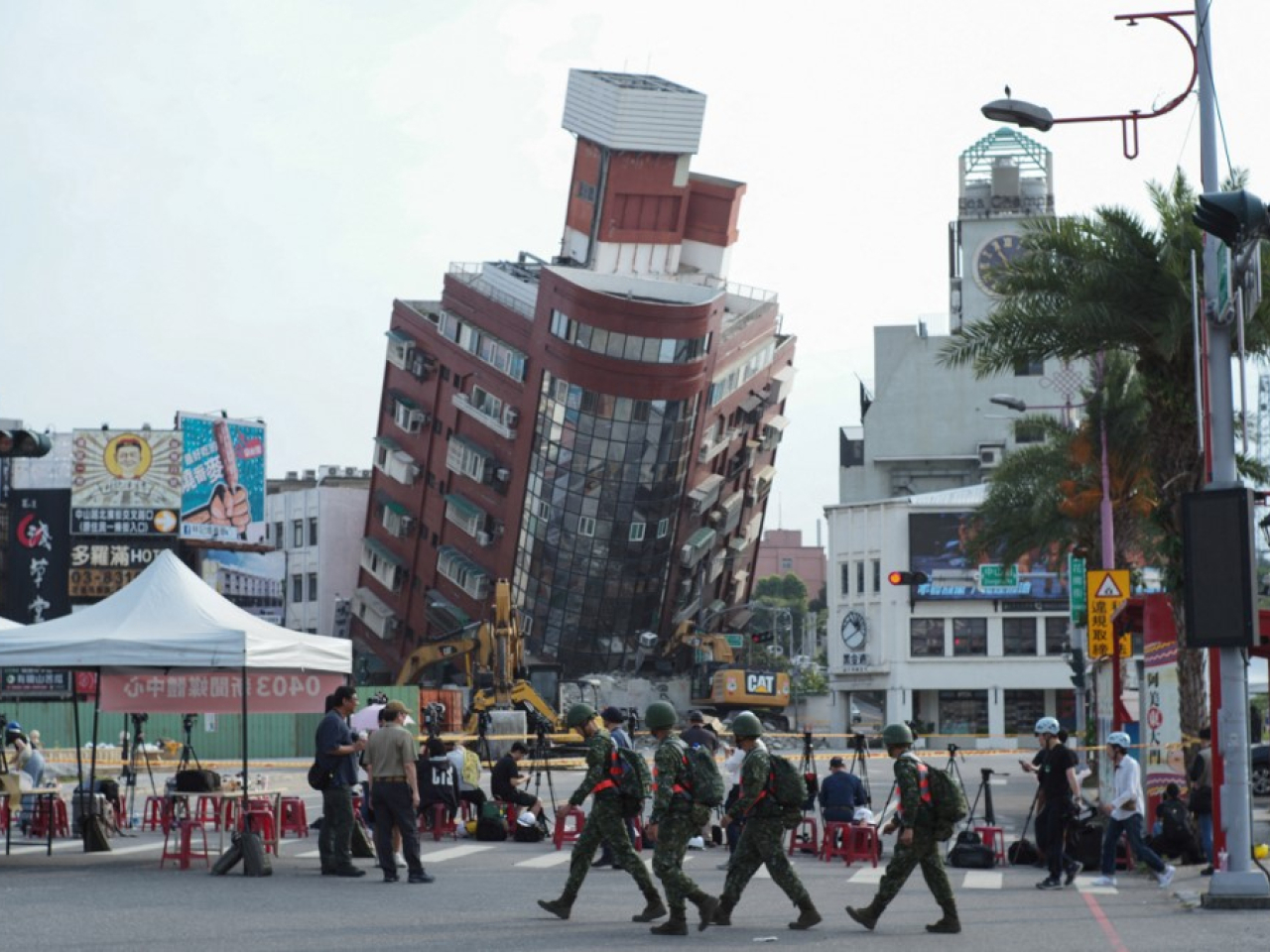 位於花蓮、震後受損的天王星大樓持續傾斜,搜救工作基本結束,之前被困大樓內的25名居民,24人脫困;一名女子身體被瓦礫壓著,昨日下午已被確認死亡,搜救人員全力移走建築結構,晚上取出遺體運走。