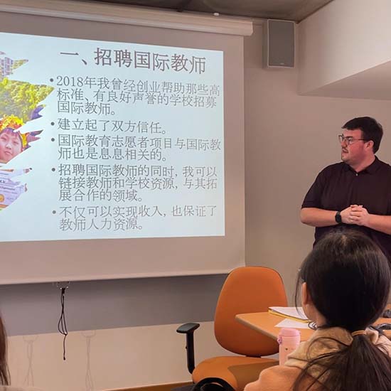 學生已經坐滿了大半個課堂,還有一些宋老師請來的嘉賓朋友,他們是中國的企業家或是老師。