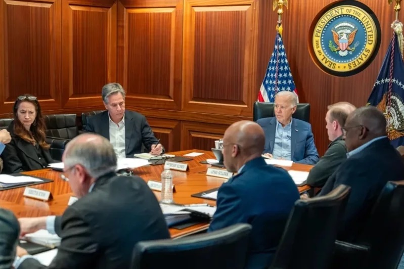 在美東時間13日獲知伊朗對以色列展開報復行動後,迅速在白宮戰情室和國安官員召開會議。圖/取自白宮官網.jpg)