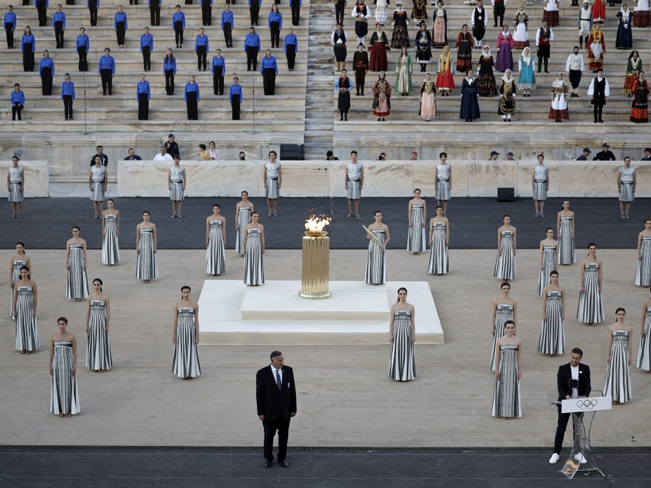 火種交接儀式當地周五在泛雅典體育場舉行,這裡是1896年第一屆現代奧運會的舉行場地,希臘奧委會主席卡普拉洛斯將火種交給巴黎奧組委主席埃斯坦蓋。埃斯坦蓋發言時說,巴黎的目標是舉辦精彩但更負責任的運動會,將有助建設一個更包容的社會。