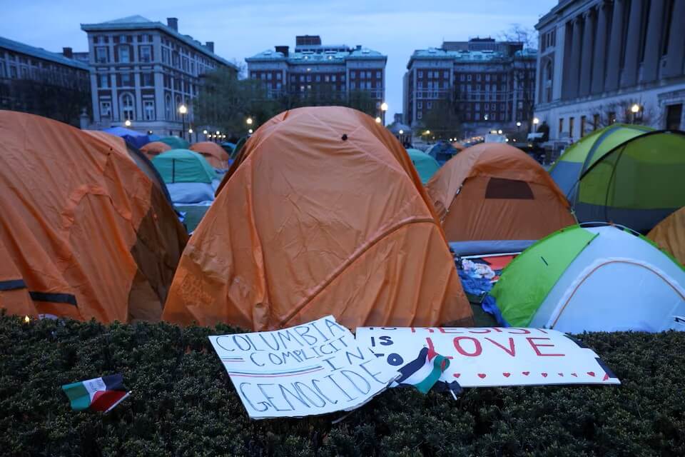 示威者一度從頂樓的窗戶展開一面巨大的巴勒斯坦旗幟,其他在地面的抗議人士,手持標語和叫口號。當政府政府官員進入會場時,示威者高聲叫喊口號,總統拜登避開正門大規模的抗議活動,從後門抵達,遇見較小規模的示威者,他們要求加沙停火。