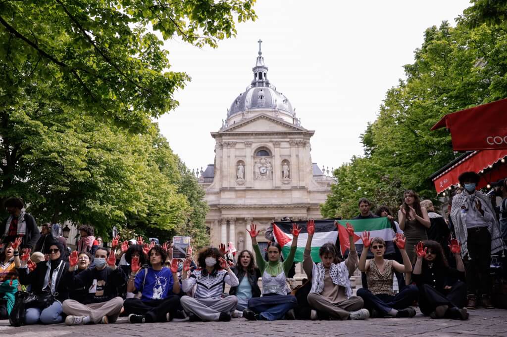 受美國學生運動影響,法國著名院校巴黎政治學院和索邦大學的部分學生也發起了“佔領校園”行動,但警方已於周一予以驅散。法國人權聯盟(LDH)與一些工會組織周二對“鎮壓”發出警告。