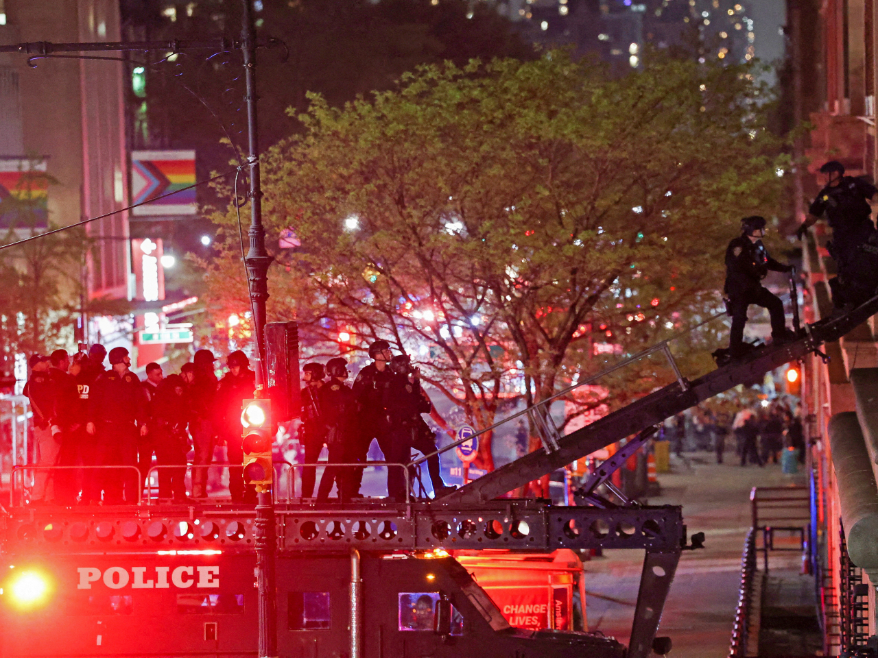 警員進入被示威者闖入的哥倫比亞大學一座學術大樓,拘捕示威者。警方稱收到大學的通知,授權警員採取行動。