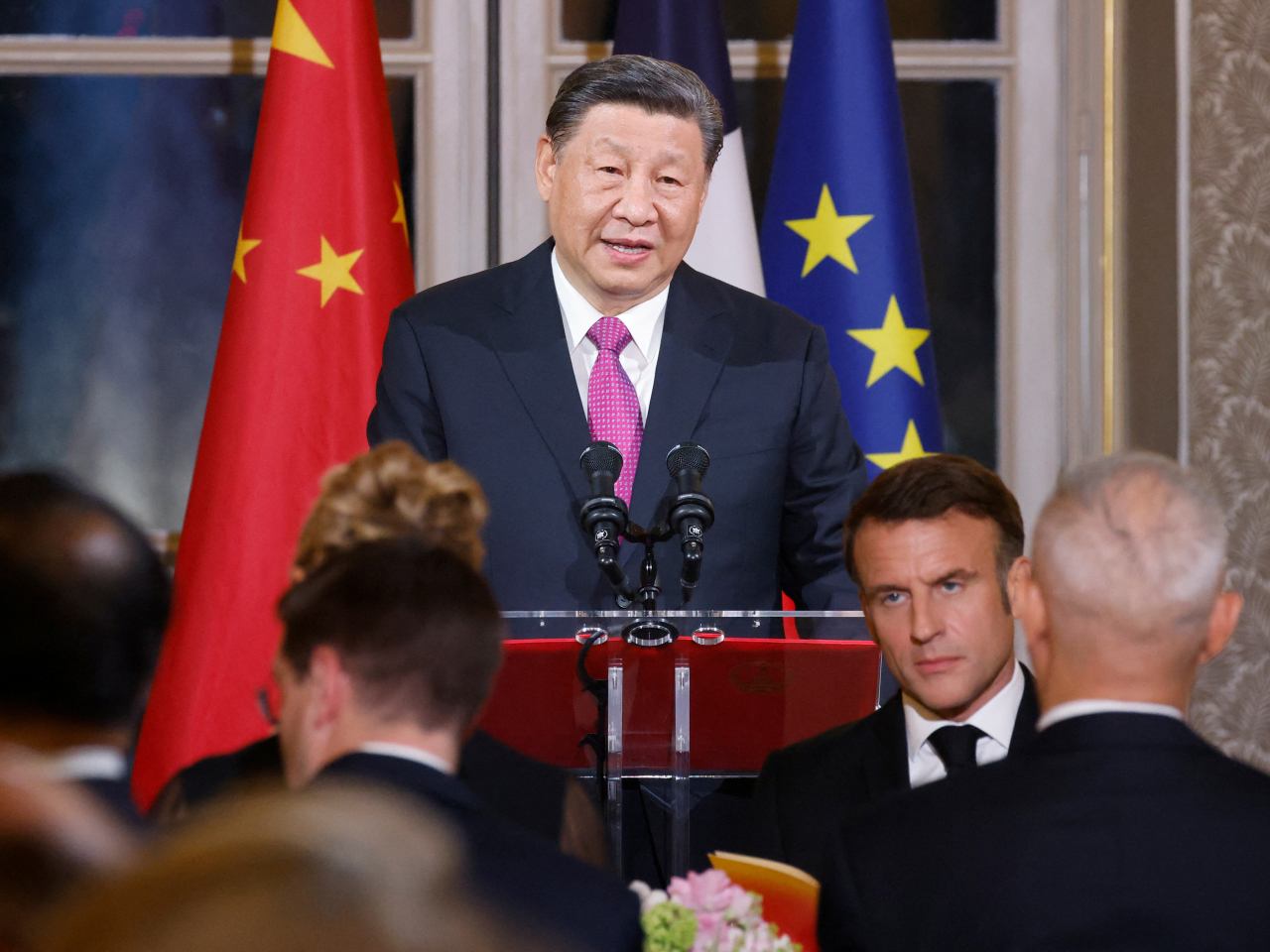 習近平周一(5月6號)上午與馬克龍(Emmanuel Macron)及歐盟執委會(European Commission)主席范德賴恩(Ursula von der Leyen)會晤後,下午與馬克龍兩人於法國總統府艾里賽宮進行雙邊會談。
