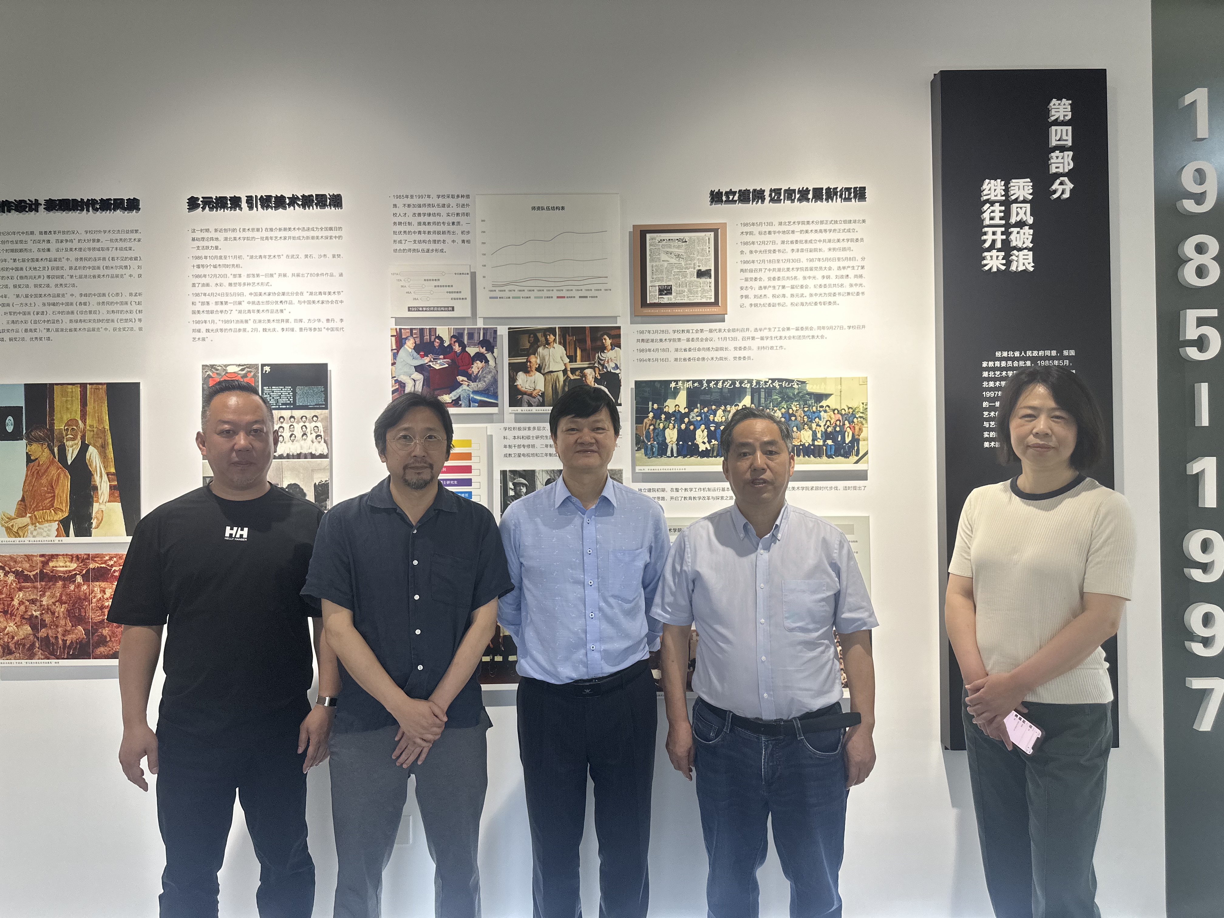 從左至右:湖北美術學院雕塑與公共藝術學院副院長吳寧、湖北美術學院副校長張煉、曾曉輝教授、華中師範大學博士師導師徐曉庚教授、湖北美術學院雕塑與公共藝術學院院長周彤在校史館