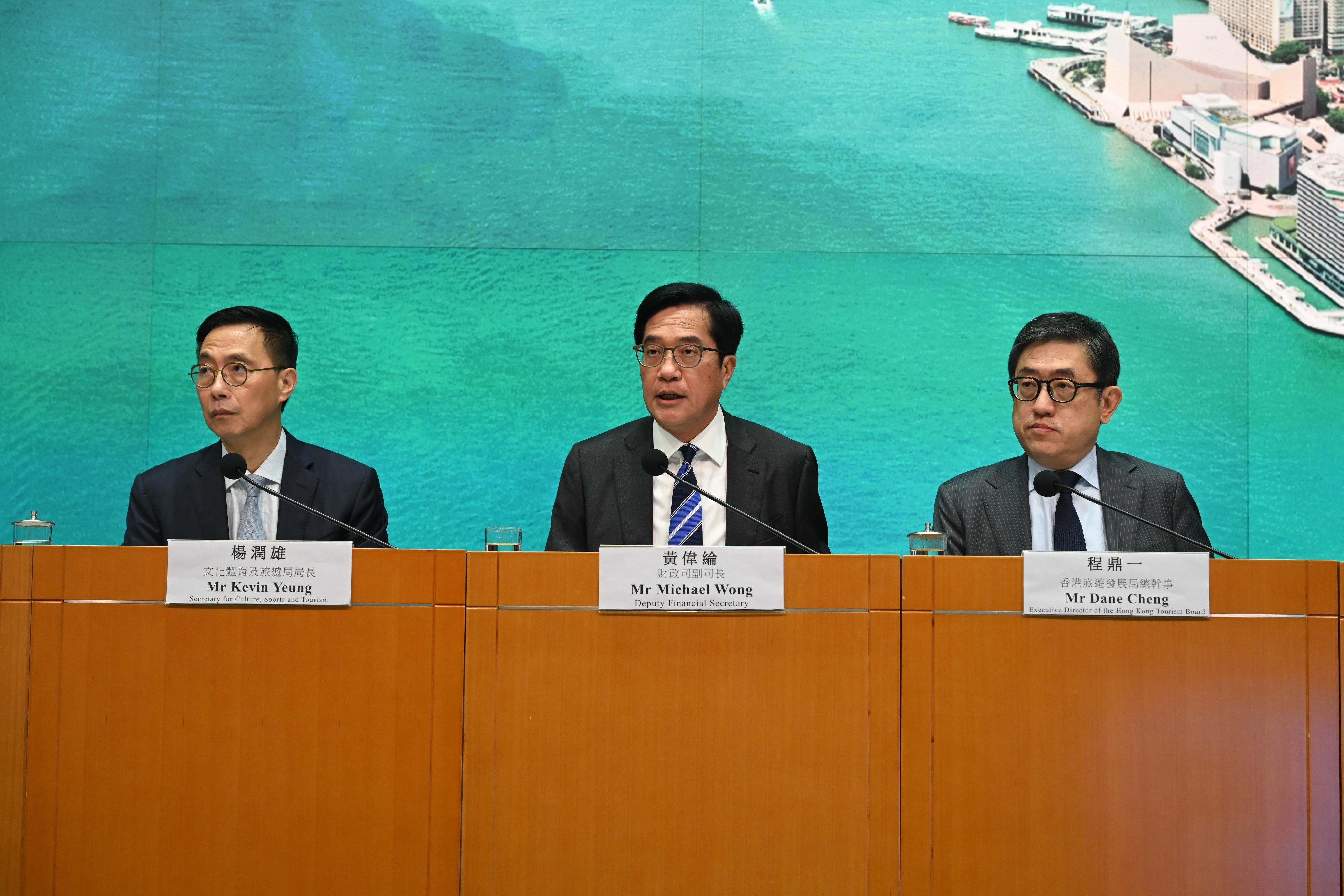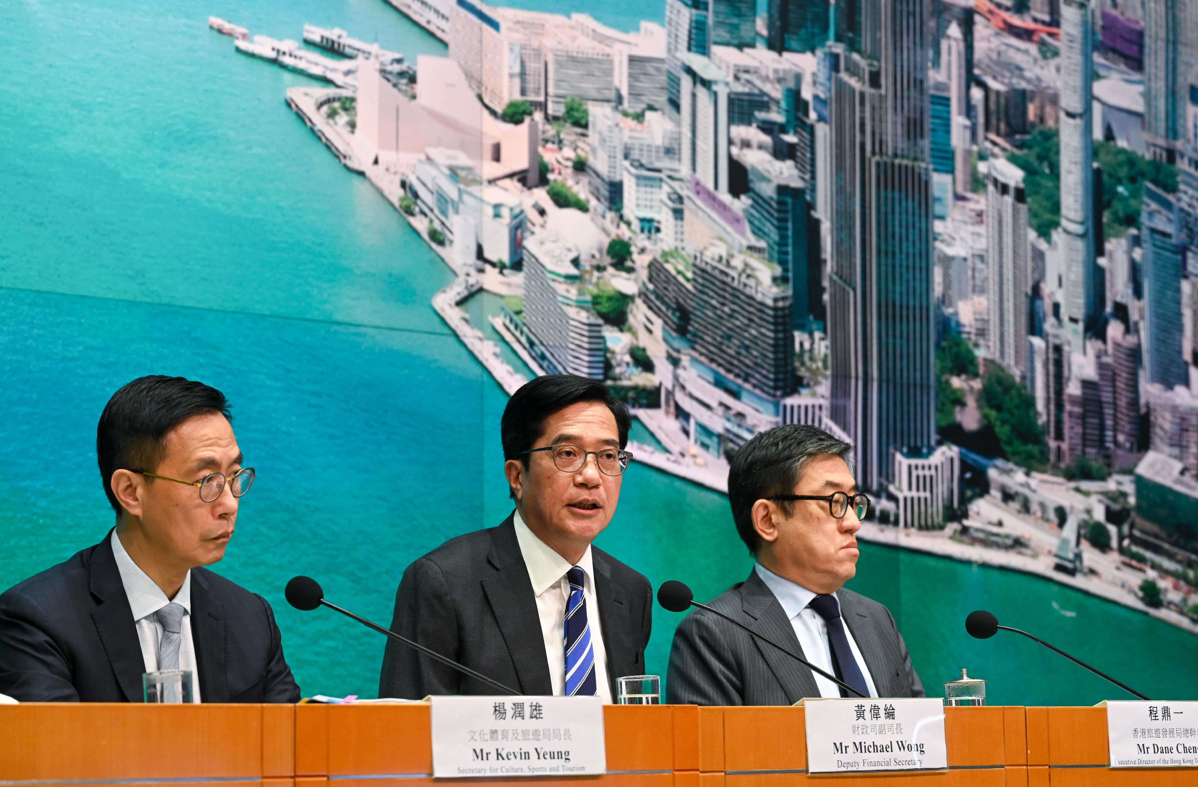 (中華新聞通訊社/中華時報5月21日訊)財政司副司長黃偉綸、文化體育及旅遊局(文體旅局)局長楊潤雄和香港旅遊發展局(旅發局)總幹事程鼎一今日(五月二十一日)主持記者會,公布二○二四年下半年香港盛事年表。以下是黃偉綸、楊潤雄和程鼎一的開場發言: