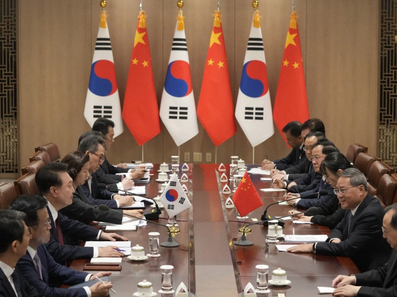 在27日舉行3國峰會前,韓國總統尹錫悅26日分別與日本首相岸田文雄及李強會談。