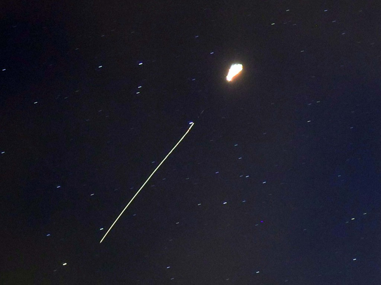 南韓軍方表示,昨晚10時44分探測到北韓發射軍事偵察衛星的航跡,並在10時46分發現有關飛行器被炸成多塊碎片,跌落朝方海域。