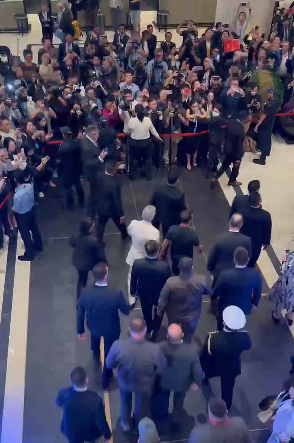 在澤連斯基到達時,香格里拉對話主辦方、英國國際戰略研究所(IISS)所長奇普曼(John Chipman)在酒店大堂迎接。現場閃光燈閃不停,守候多時的記者,趕緊按下快門,以捕捉澤連斯基抵步的鏡頭。