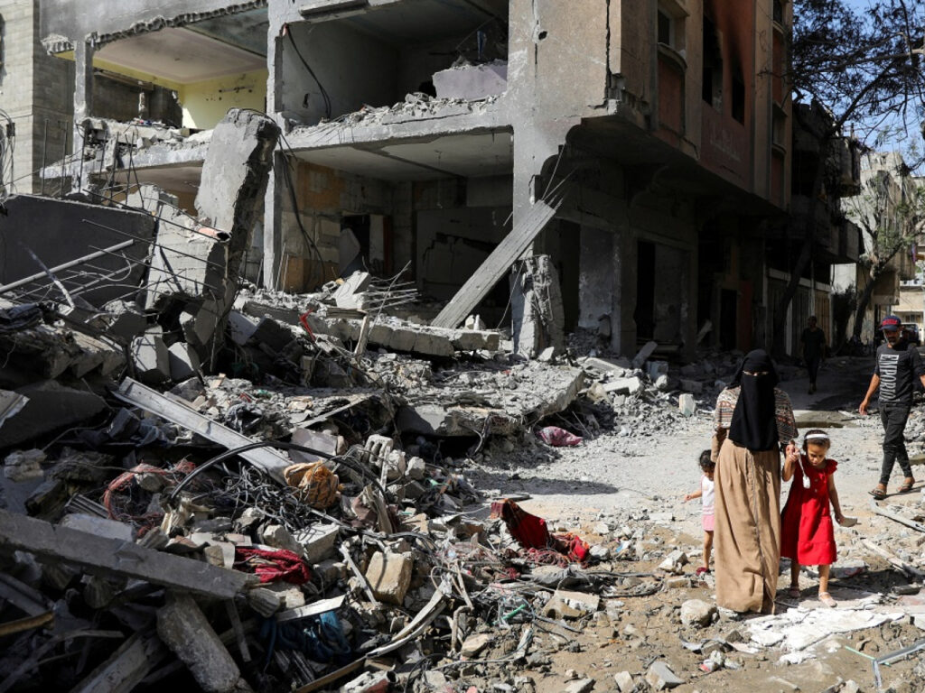 以軍空襲加沙中部努賽賴特難民營後,一片頽垣敗瓦。(路透社資料圖片)