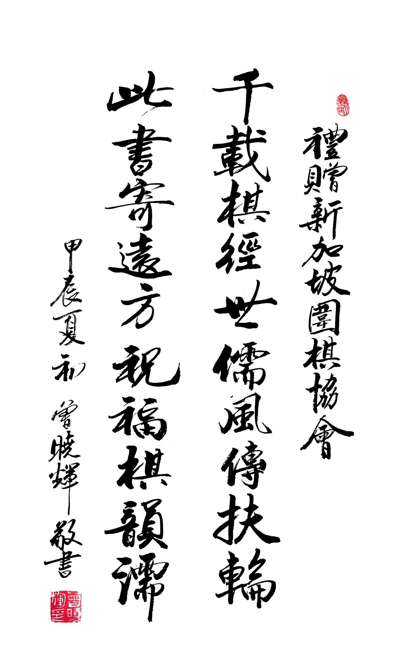 為感謝新加坡亞洲文明博物館及新加坡圍棋協會,我特寫詩題書法禮贈它們,予以感謝。