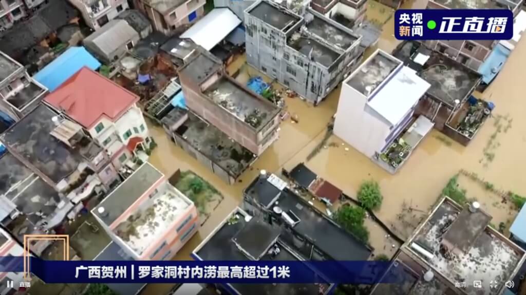 另據央視報導,廣西水文中心表示,受強降雨及上游來水影響,桂江上游大溶江已出現超警3公尺的洪水。今天上午7時,廣西有39條河流48個站超警,廣西水文中心升級發布洪水橙色預警,廣西水文中心預測,未來24小時,桂江水位將全線復漲。