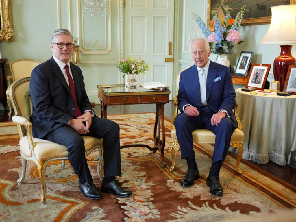 斯塔默(Keir Starmer)按慣例前往白金漢宮晉見國王查爾斯三世(King Charles III),根據白金漢宮公布的照片,查理斯三世與施紀賢會面時,兩人握手及交談,斯塔默隨後離開白金漢宮。隨後在唐寧街發表就任演說。