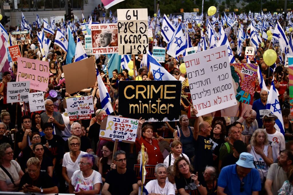 法新社報導,抗議人士希望以色列總理內塔尼亞胡(Benjamin Netanyahu)達成停戰與釋放人質的協議,否則下台。