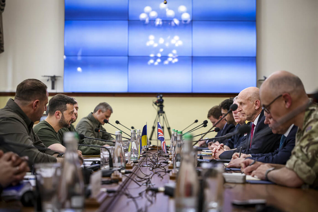 7日訪問烏克蘭南部濱臨黑海港口城市敖德薩,與烏克蘭總統澤倫斯基(左2)和國防部長烏梅洛夫(左1)舉行雙邊會談。(英國國防部提供).jpg)