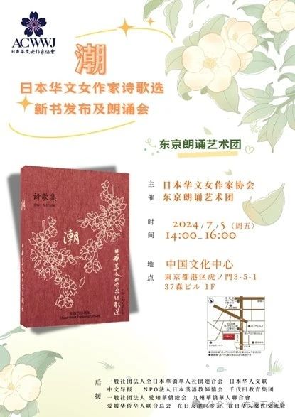 (中華新聞通訊社/中華時報7月10日訊)7月5日,日本烈日當空驕陽似火,日本的東京文化中心也舉辦了非常火熱的一場活動,日本華文女作家協會&東京朗誦藝術團成功舉辦《潮-日本華文女作家詩歌選》新書發佈會暨詩歌朗誦會。這是兩個團體第一次合作,用朗誦會的形式舉辦作家們的新書發佈會也是一次新的嘗試。