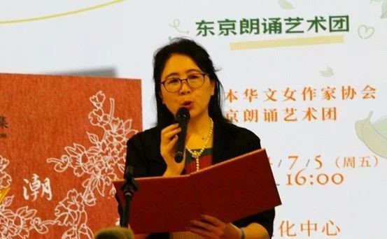 彌生說:“首先感謝今天蒞臨活動現場的各位朋友各位嘉賓,我們今天相聚在中國文化中心,是為了剛剛出版的這本新書《潮-日本華文女作家詩歌選》舉辦新書發佈暨分享會。此次活動由日本華文女作家協會和東京朗誦藝術團共同策劃和主辦,是一次不同以往的文學與朗誦藝術結合的盛筵。”