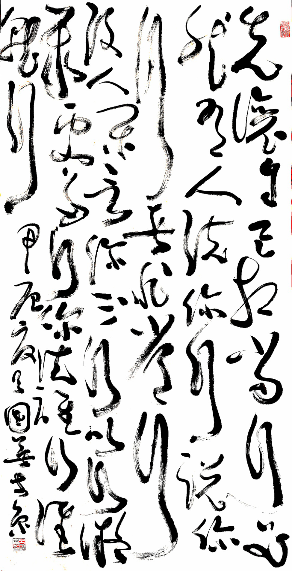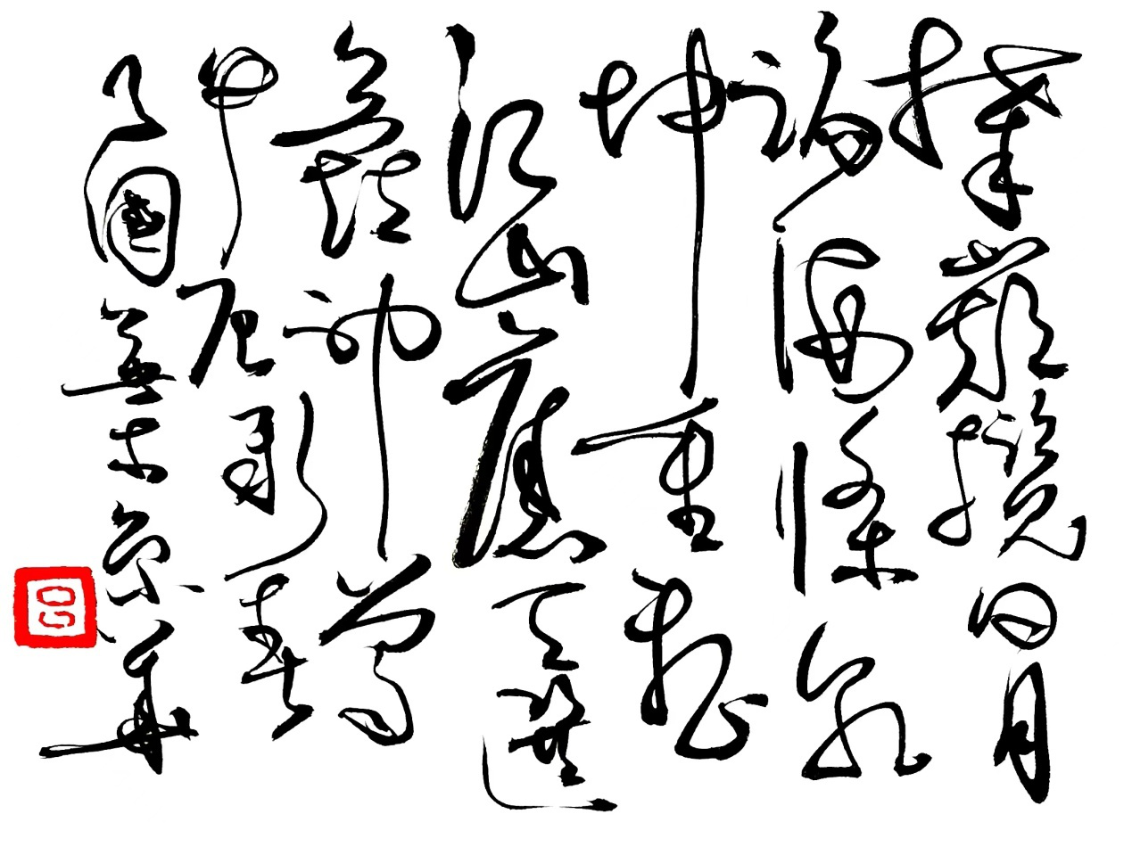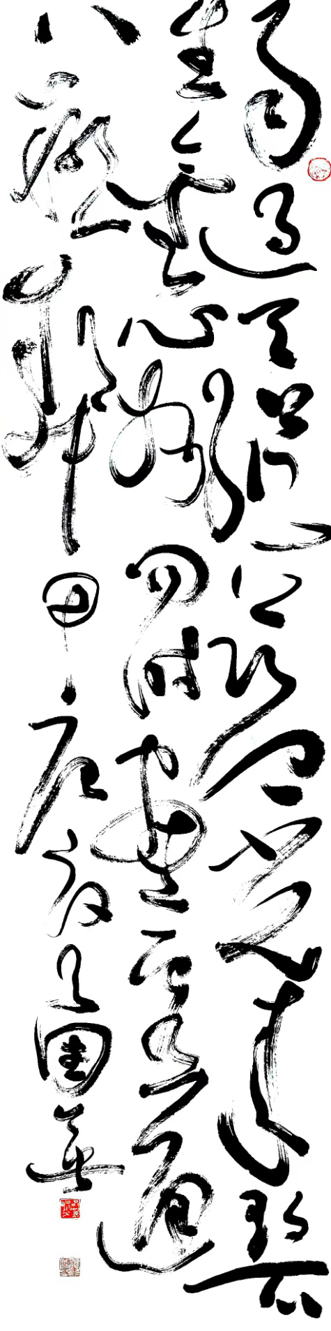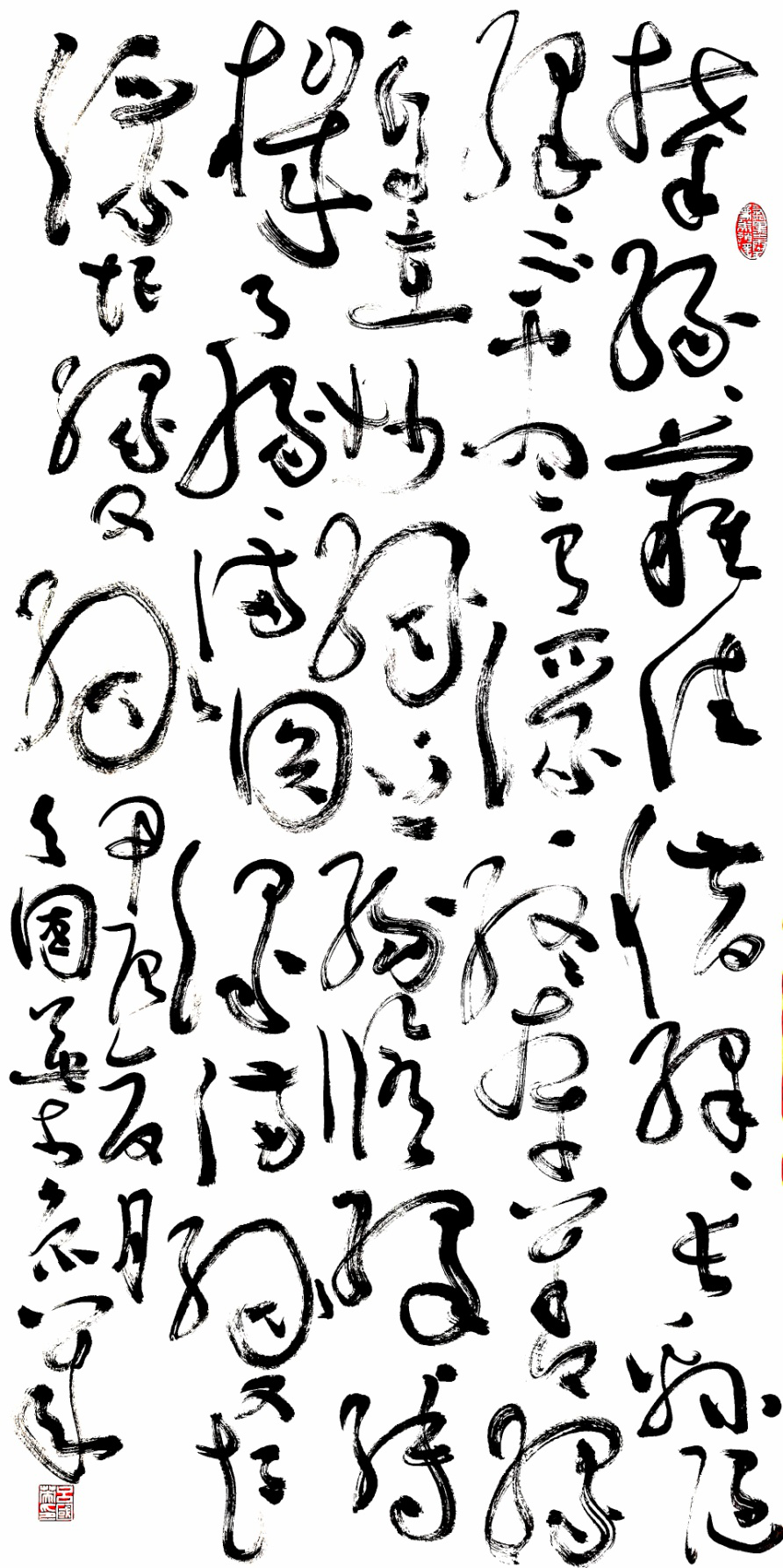 呂國英先生認為,靈草是狂草的遠方。其書象建構與美學境界,既可從其原創藝術理論專著《“氣墨靈象藝術”論》中眺瞻理論高度,又可在其原創書論《“書象”簡論》中慧悟學術維度。其詩成而“草(書)”就,草就而詩顯,既舉“詩文隨世運,無日不趨新。”又彰“有動於心,必於草發。”本期選編呂國英先生幾幅(首)詩書近作,以饗讀者,並期待大家批評。